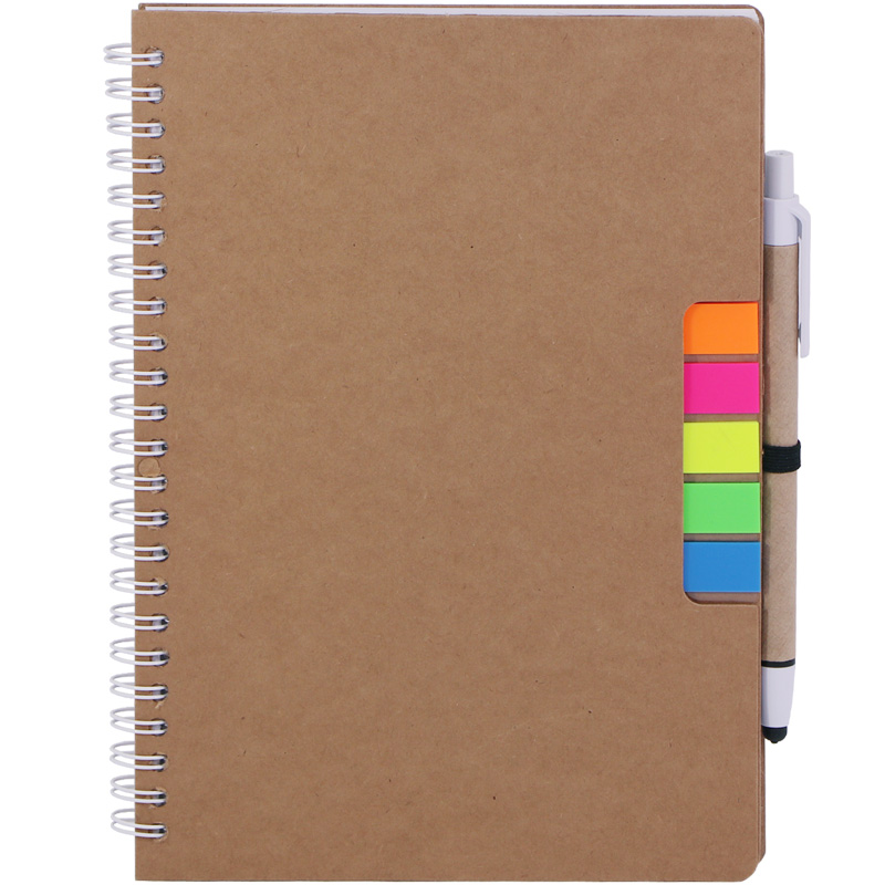 A5 Eco Spiral Notebook with Ballpen and Sticker,70 Sheets 70g Lined White Papers