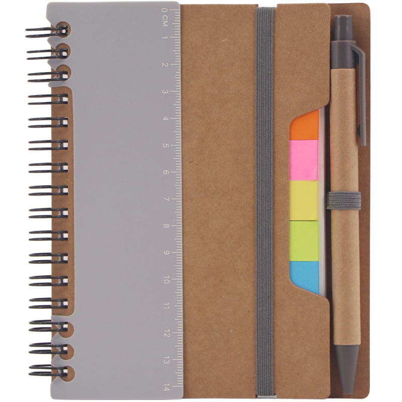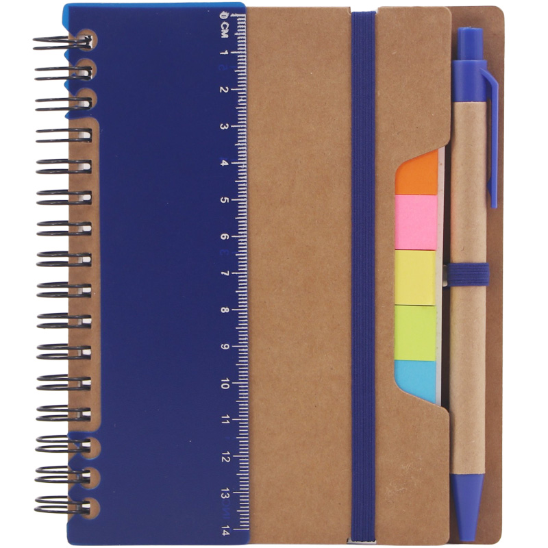 Eco Sticky Notebook with Ballpen and Ruler,70 Sheets 70g Lined White Papers,25 Sheets 5 Colors Sticky Flags,14cm Eco Ballpen,14cm Plastic Ruler