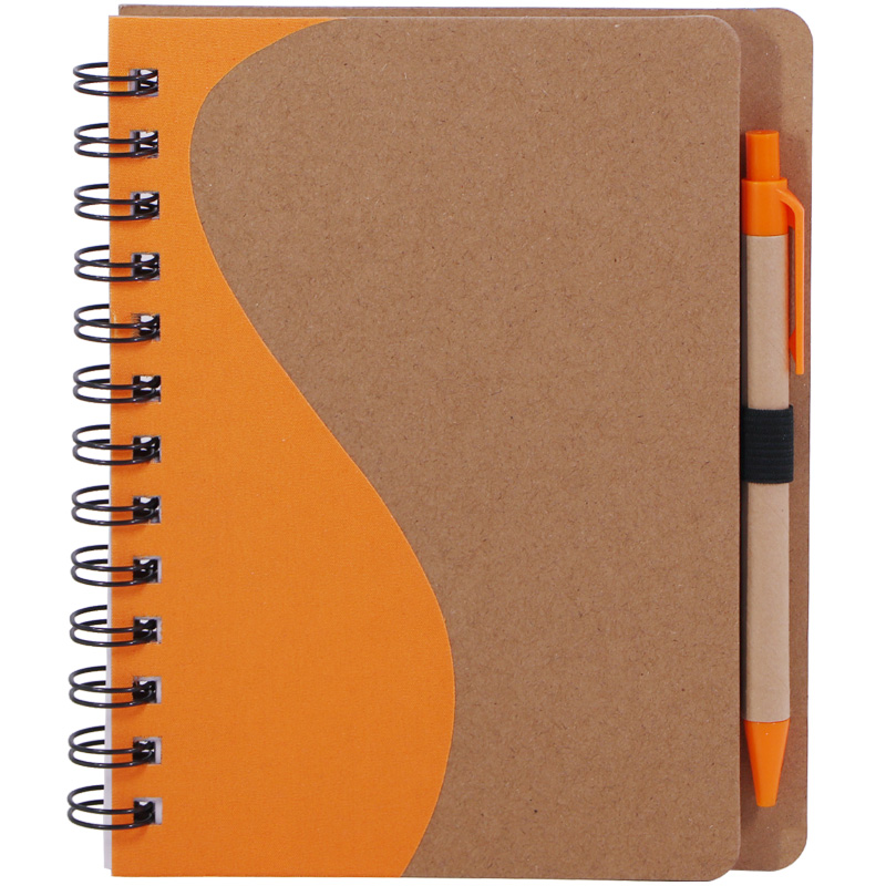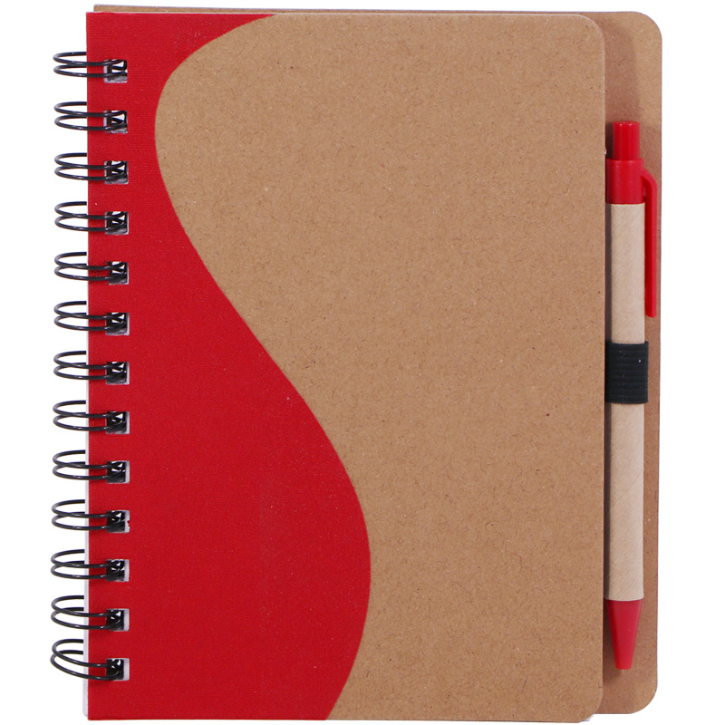 B6 Eco Spiral Notebook with Ballpen,70 Sheets 70g Lined White Papers,Cloth Fabric Decoration on the Cover