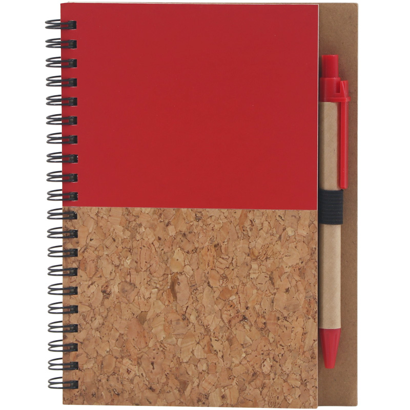 B6 Cork+PU Spiral Notebook with Pen,70 Sheets 70g Lined Cream Papers