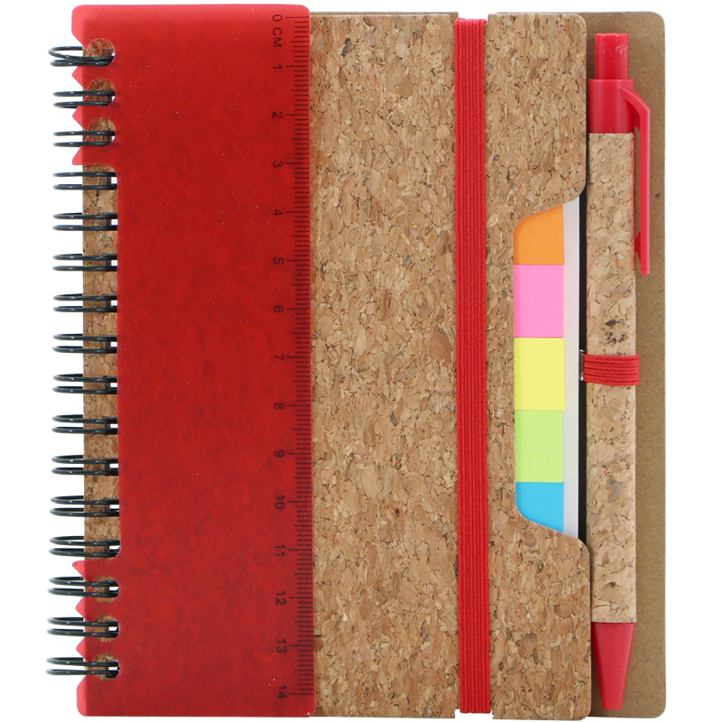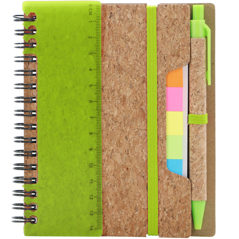 Cork Sticky Notebook with Ballpen and Ruler,70 Sheets 70g Lined White Papers,25 Sheets 5 Colors Sticky Flags,14cm Eco Ballpen,14cm Plastic Ruler