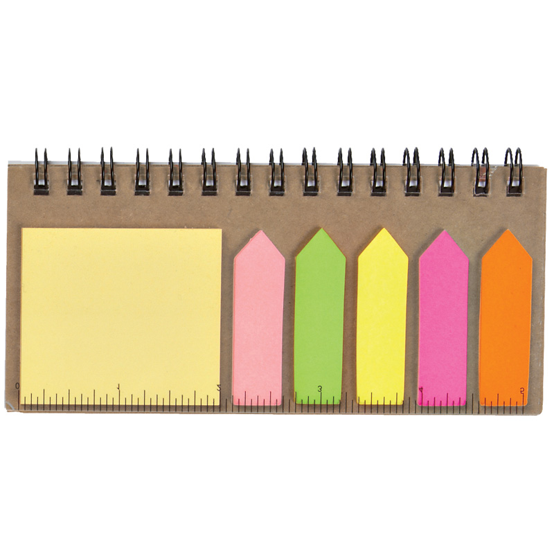 Eco Spiral Sticky Notepad with Ruler,25 Sheets Yellow&Pink Sticky Notes
