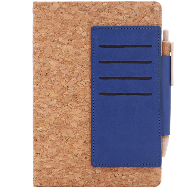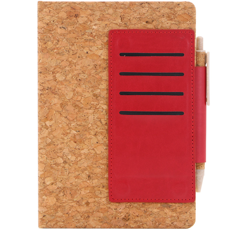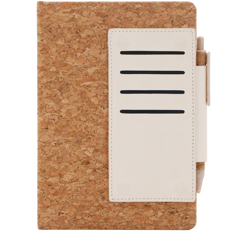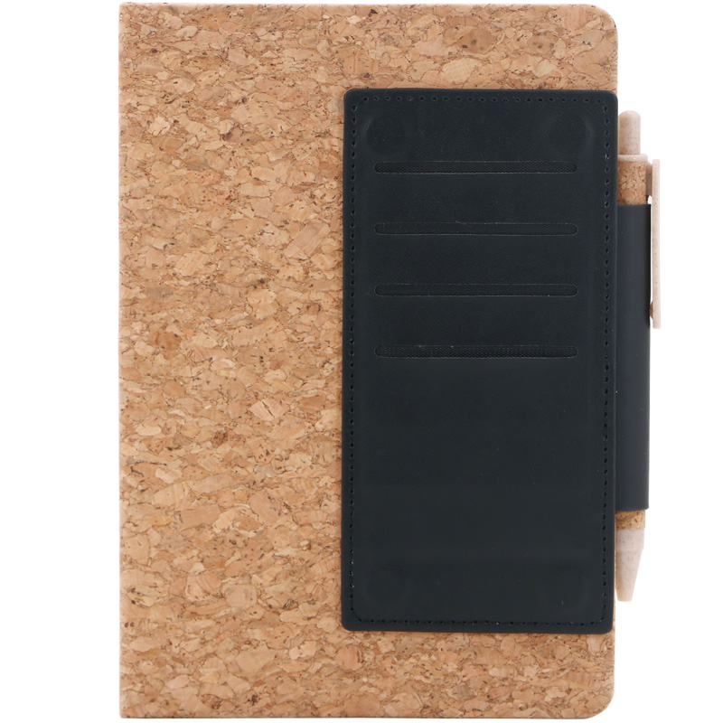 A5 Cork+PU Notebook with Card Holder,96sheets 70grams Cream Papers with Black Lines.