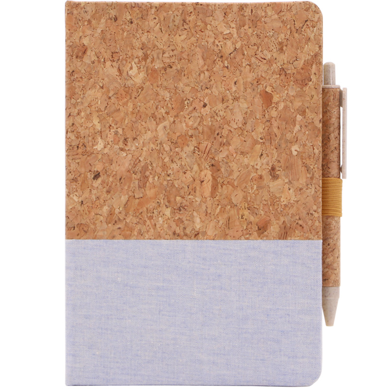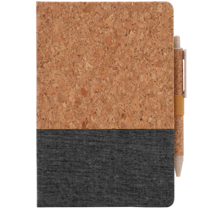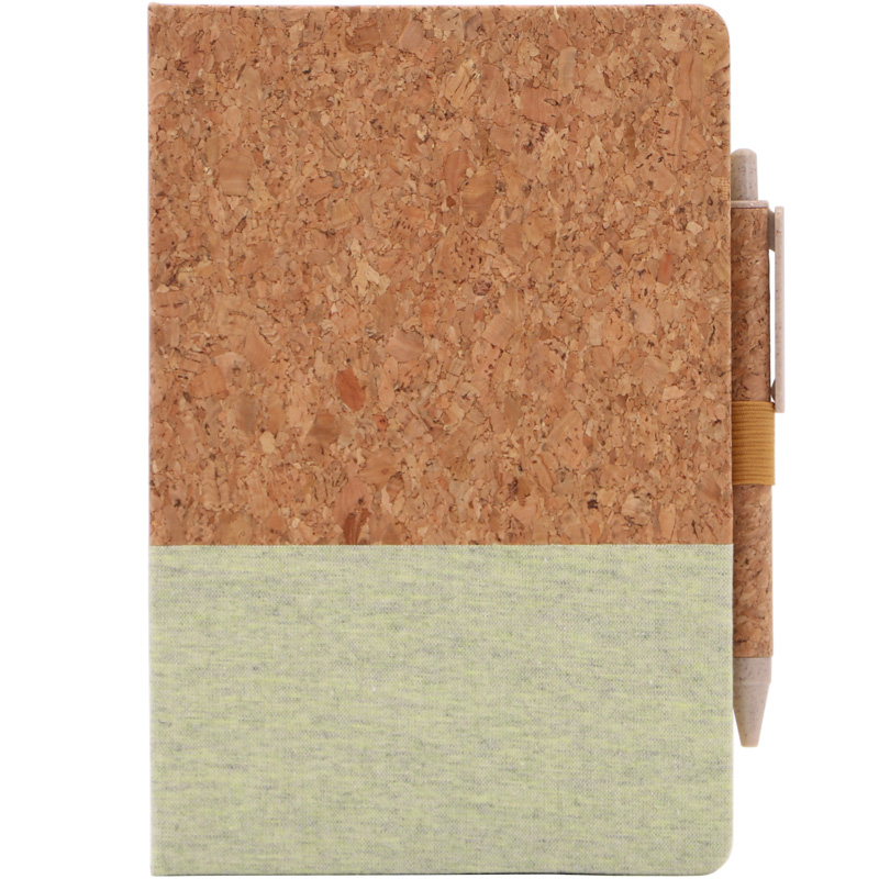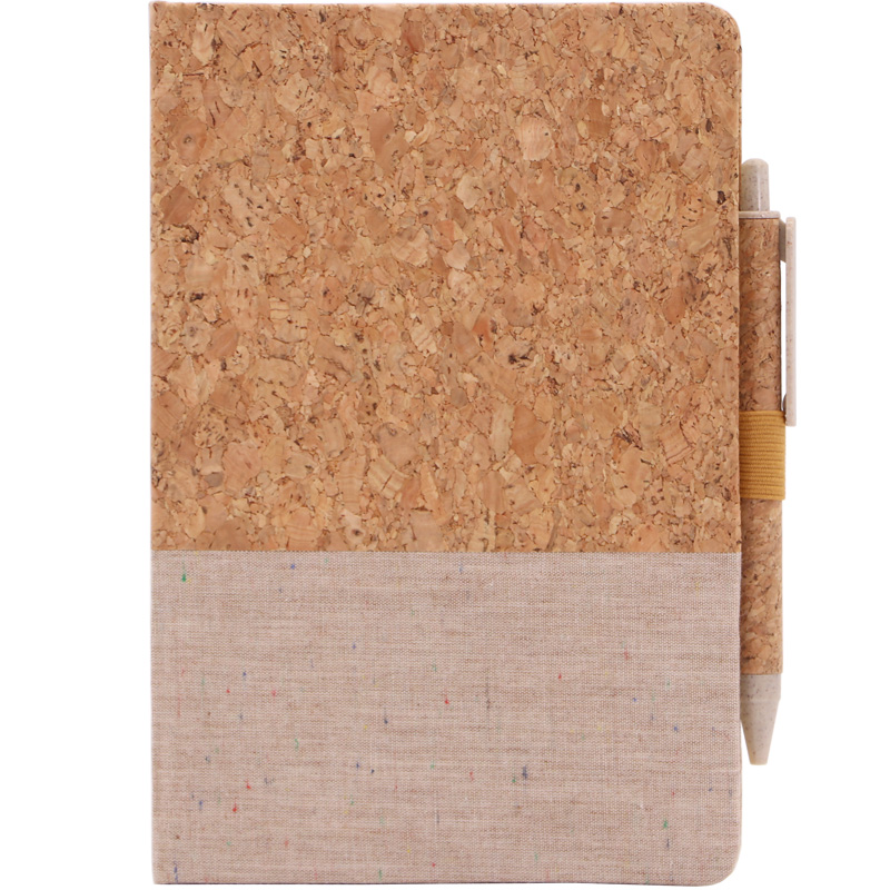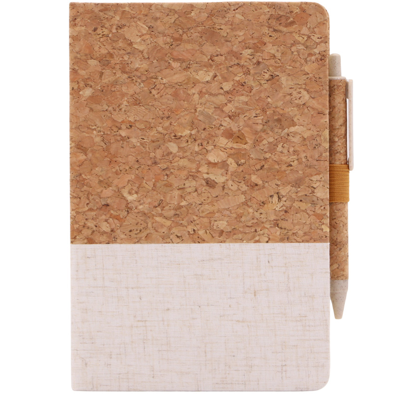 A5 Cork+Linen Notebook with Cork Ballpen,96sheets 70grams Cream Papers with Black Lines,Magnetic Closure
