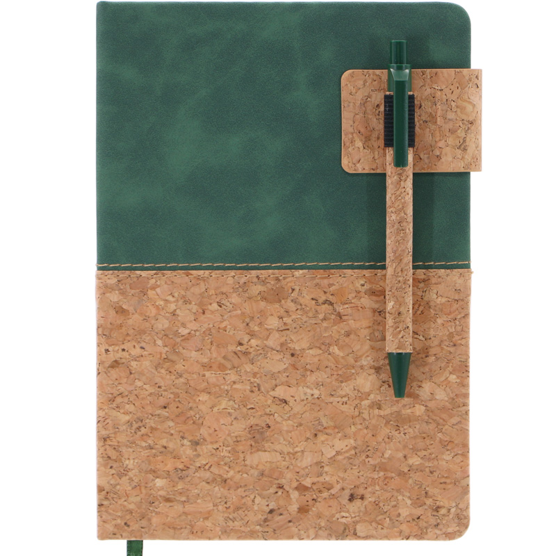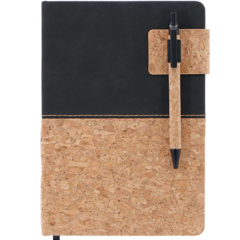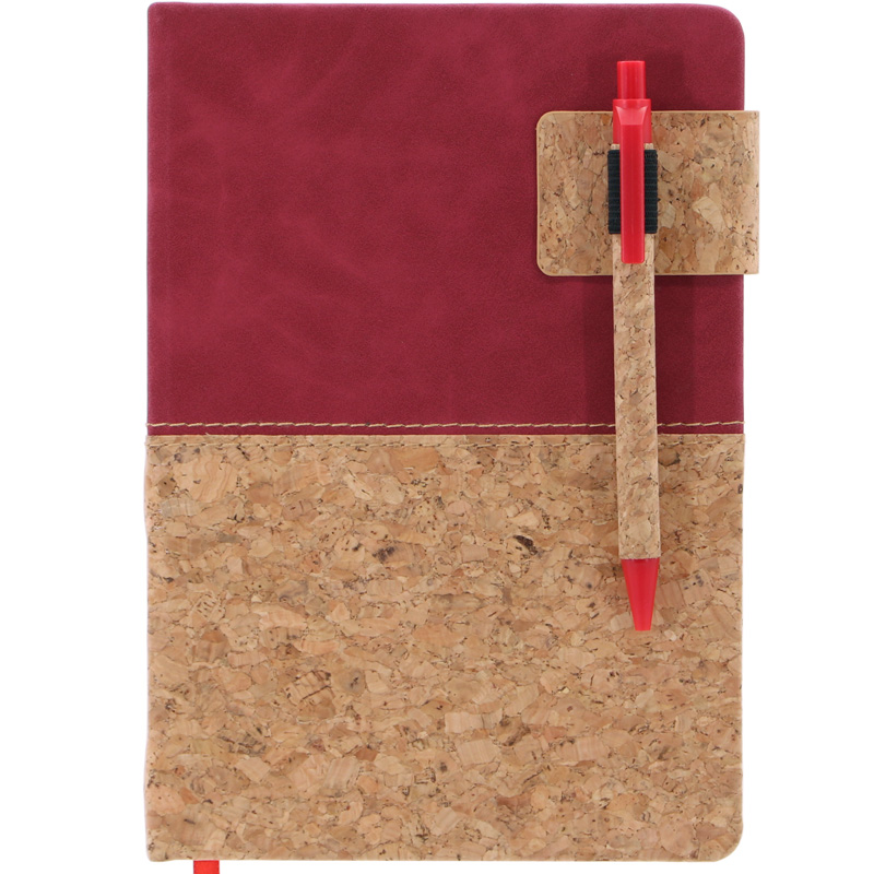 A5 Cork+PU Notebook with Cork Ballpen,96sheets 70grams Cream Papers with Black Lines