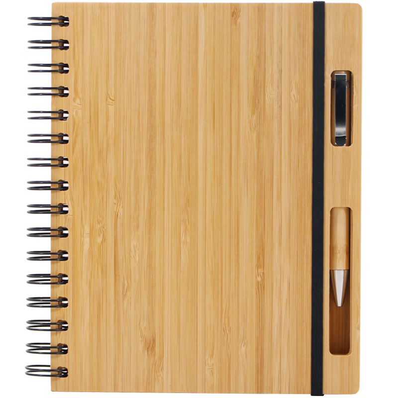Bamboo Spiral Notebook with Bamboo Ballpen&Phone Stand,120sheets 70grams Kraft Papers with Black Lines