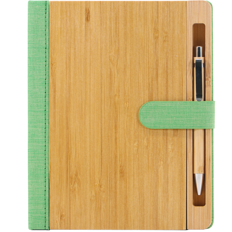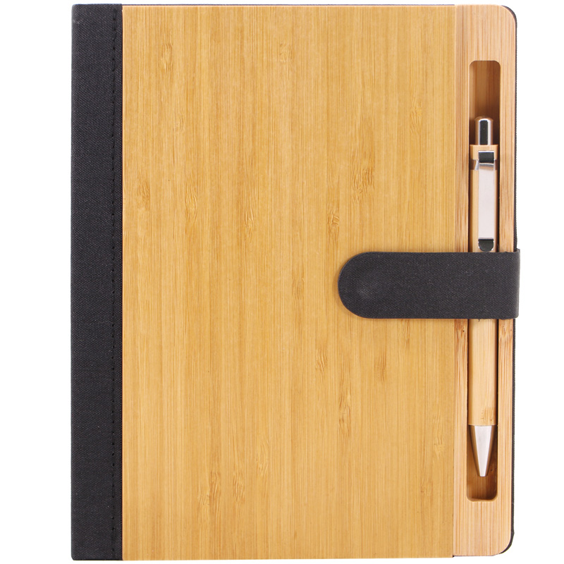 Bamboo+RPET Notebook with Bamboo Ballpen&Phone Stand,96sheets 70grams Cream Papers with Black Lines