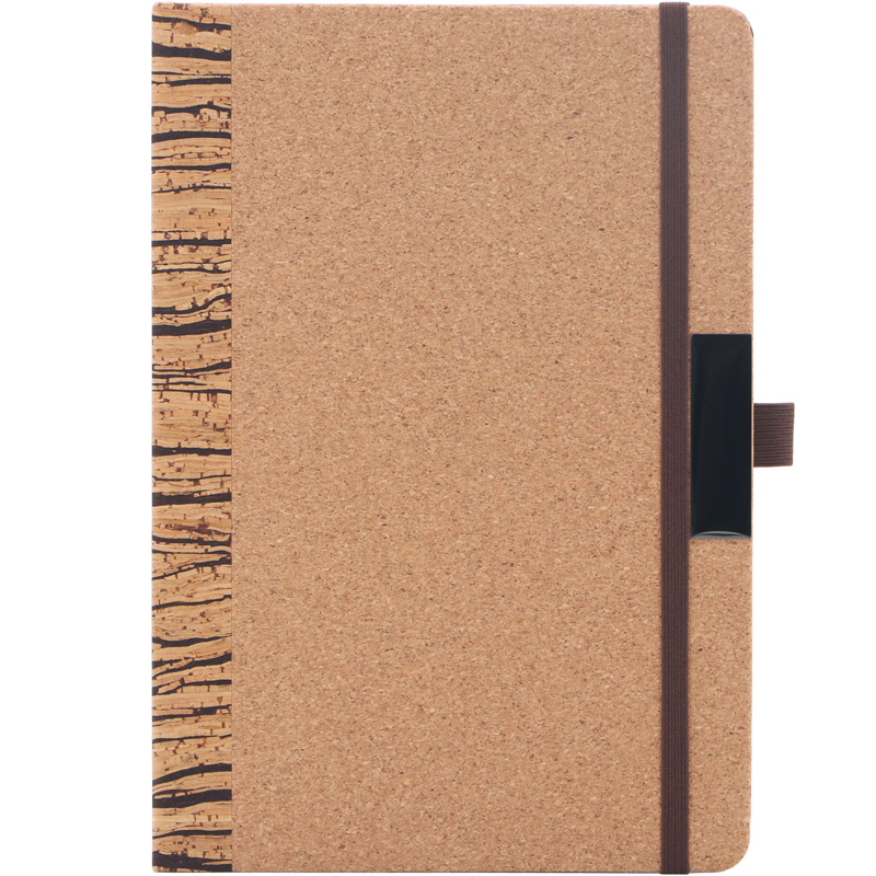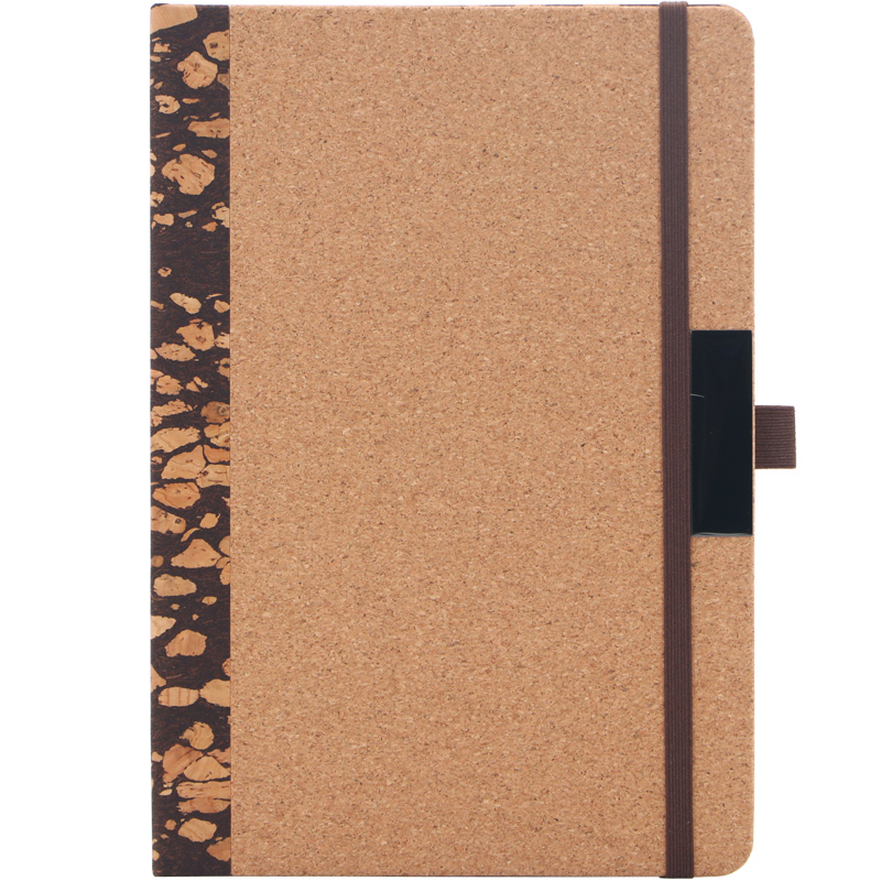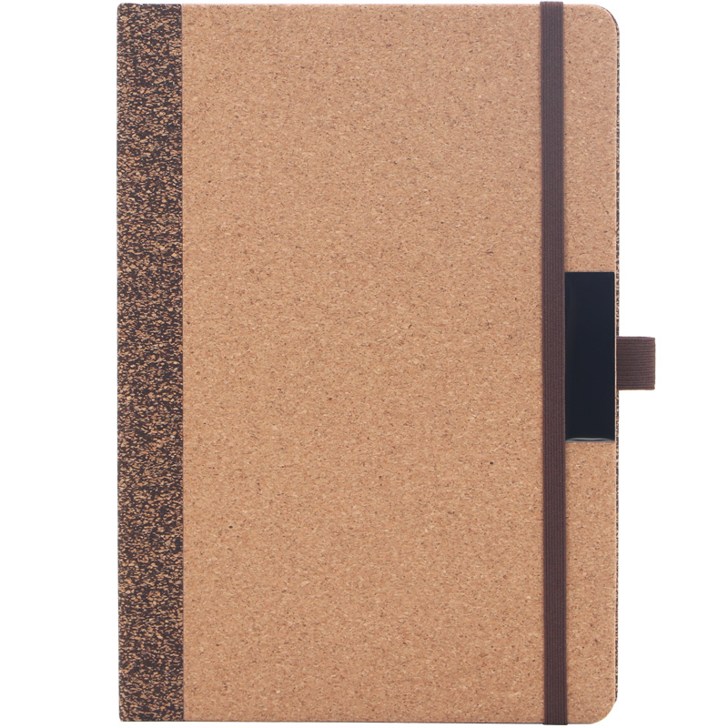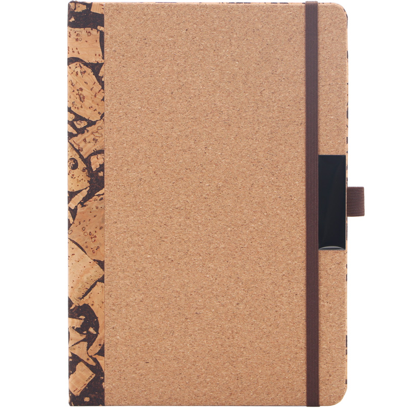 A5 Cork+Coffee Fibre Notebook with Card Holder&Ballpen,96sheets 70grams Cream Papers with Black Lines