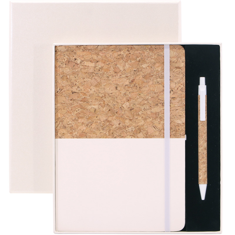 Gift Set,A5 PU+Cork Notebook with Cork Ballpen,96Sheets 70g Lined Cream Papers