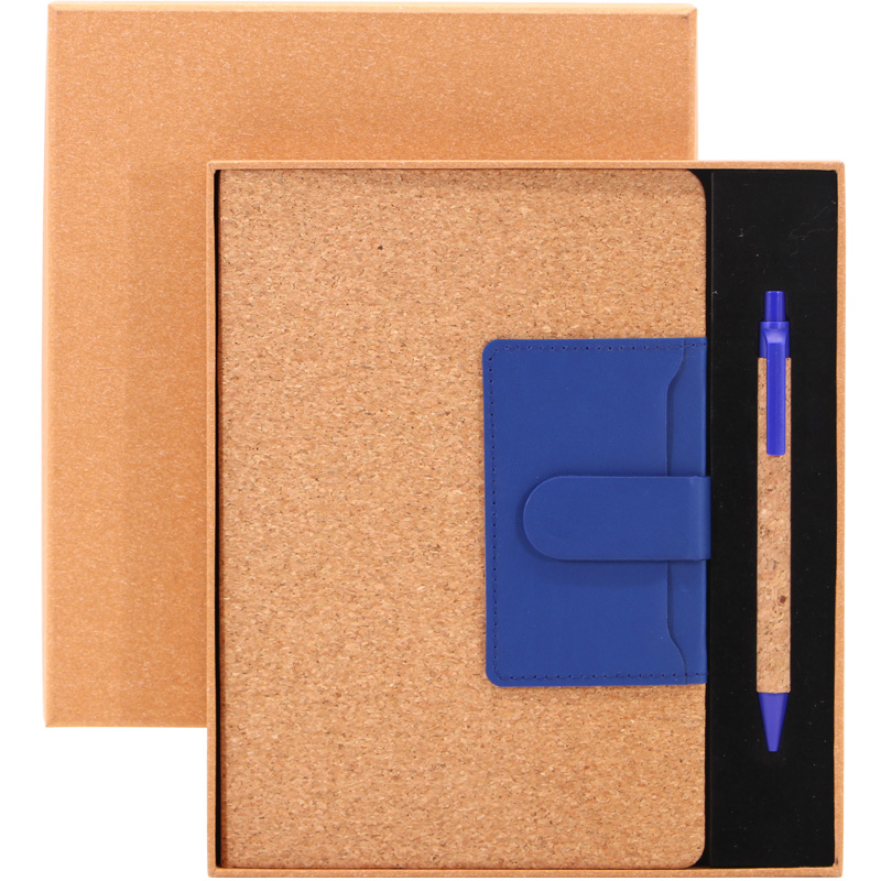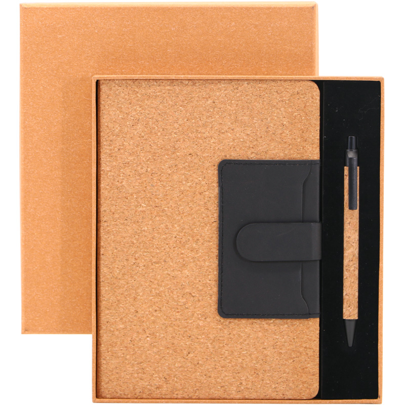 Gift Set,A5 Cork Notebook with PU Card Pocket,Cork Ballpen,96Sheets 70gms Lined Cream Papers