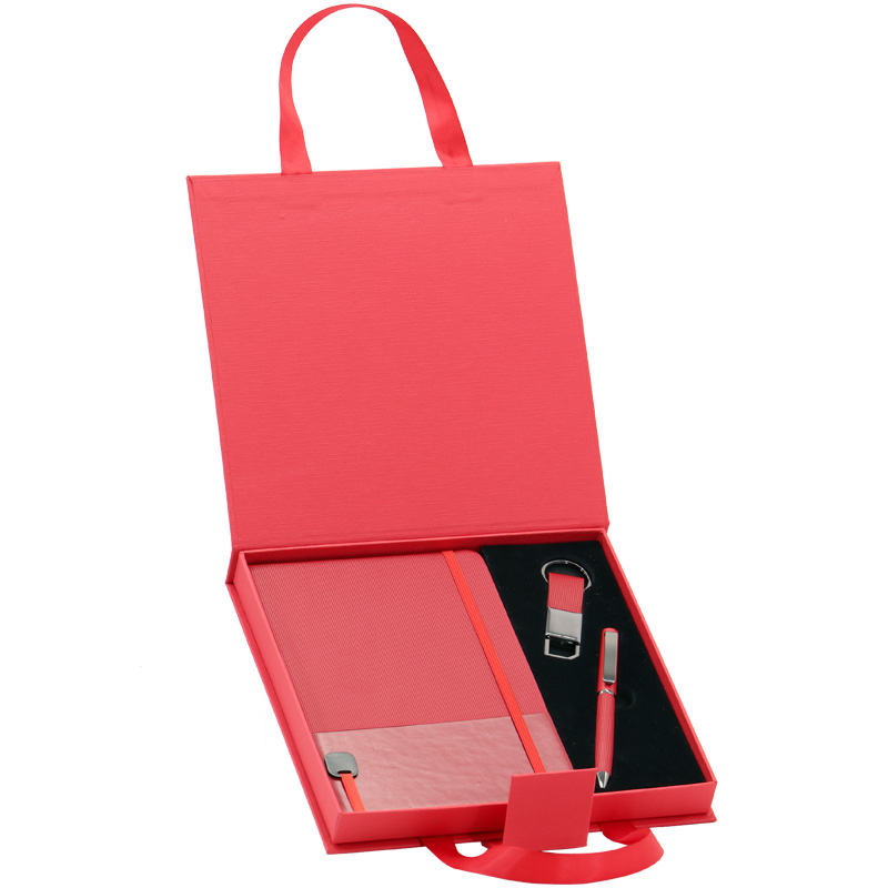 Handle Gift Set,A5 PU Notebook with Ballpen&Keychain,96Sheets 70gms Lined Cream Papers