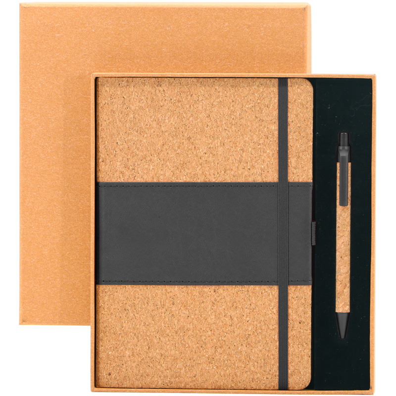 Gift Set,A5 Cork+PU Notebook,Cork Ballpen,96Sheets 70gms Lined Cream Papers
