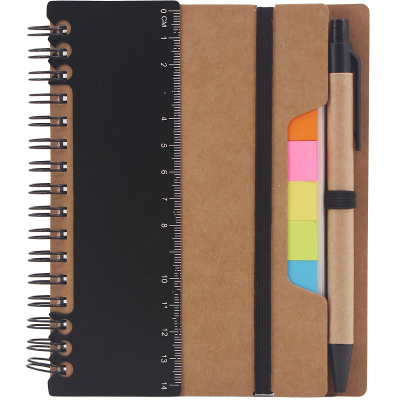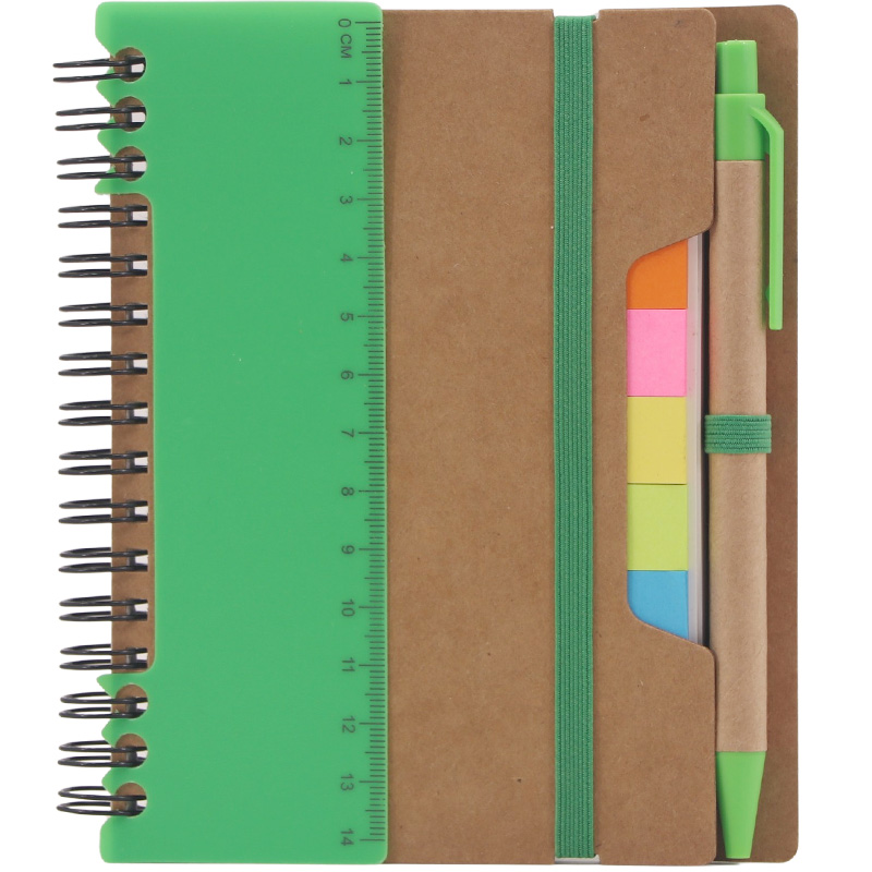 Eco Sticky Notebook with Ballpen and Ruler,70 Sheets 70g Lined White Papers,25 Sheets 5 Colors Sticky Flags,14cm Eco Ballpen,14cm Plastic Ruler
