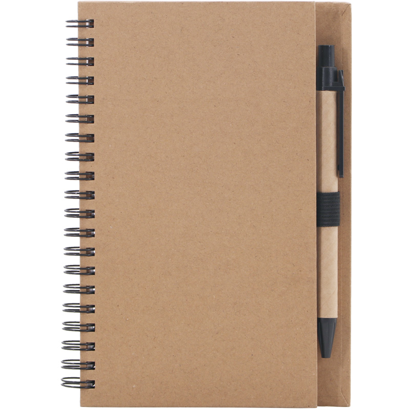 B6 Eco Spiral Sticky Notebook with Ballpen,70 Sheets 70g Lined White Papers,25 Sheets 5 Colors Sticky Flags,2 Card Pockets