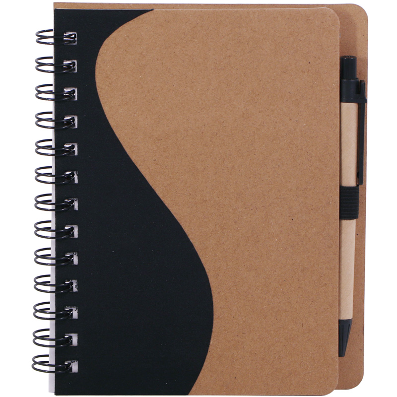 B6 Eco Spiral Notebook with Ballpen,70 Sheets 70g Lined White Papers,Cloth Fabric Decoration on the Cover