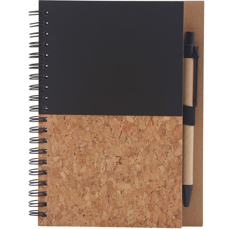 B6 Cork+PU Spiral Notebook with Pen,70 Sheets 70g Lined Cream Papers