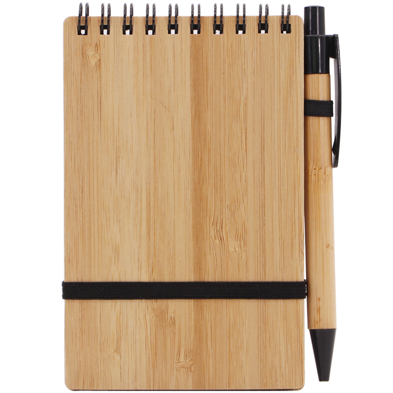 A6 Bamboo Spiral Notebook with Ballpen,70 Sheets 70g Lined White Papers