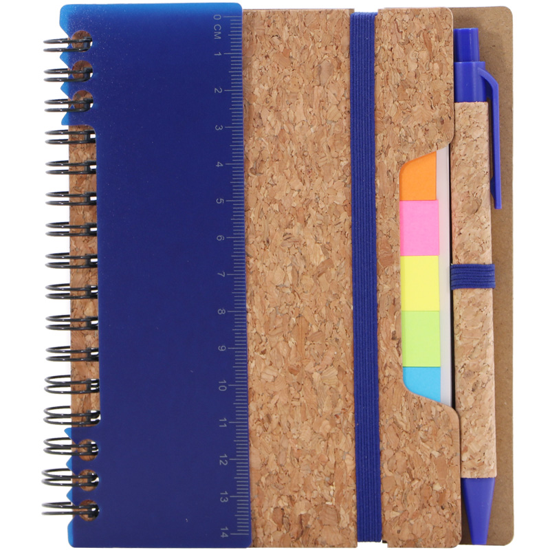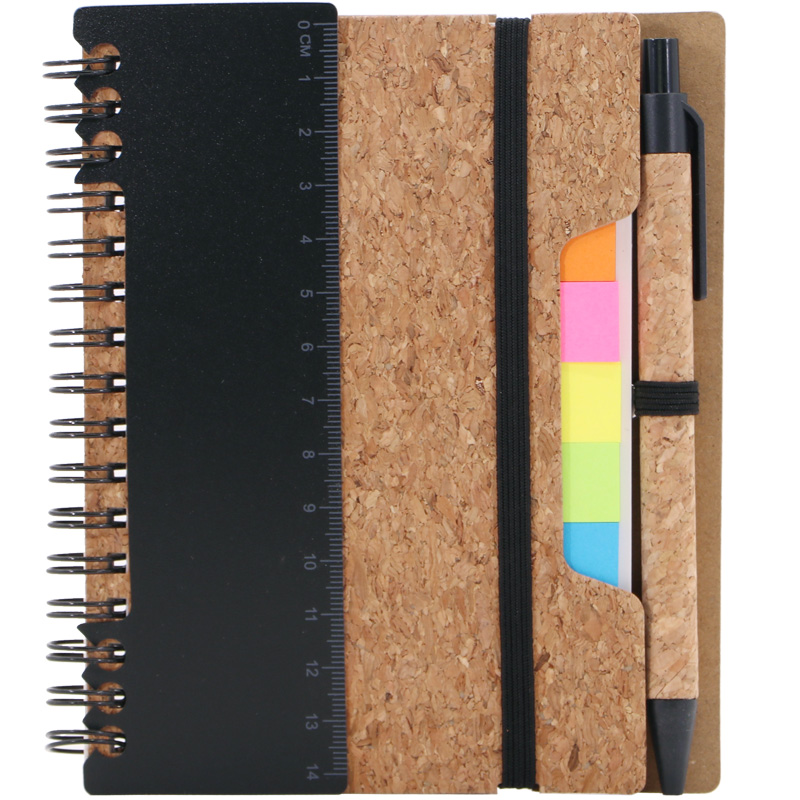 Cork Sticky Notebook with Ballpen and Ruler,70 Sheets 70g Lined White Papers,25 Sheets 5 Colors Sticky Flags,14cm Eco Ballpen,14cm Plastic Ruler