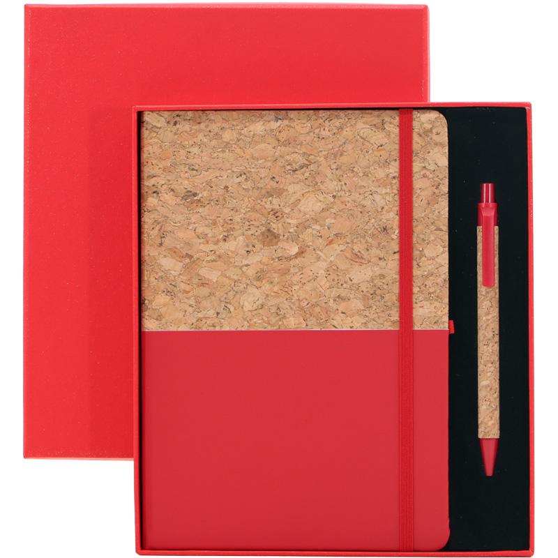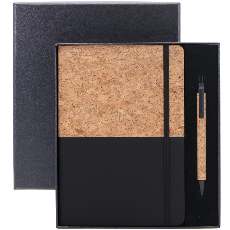 Gift Set,A5 PU+Cork Notebook with Cork Ballpen,96Sheets 70g Lined Cream Papers