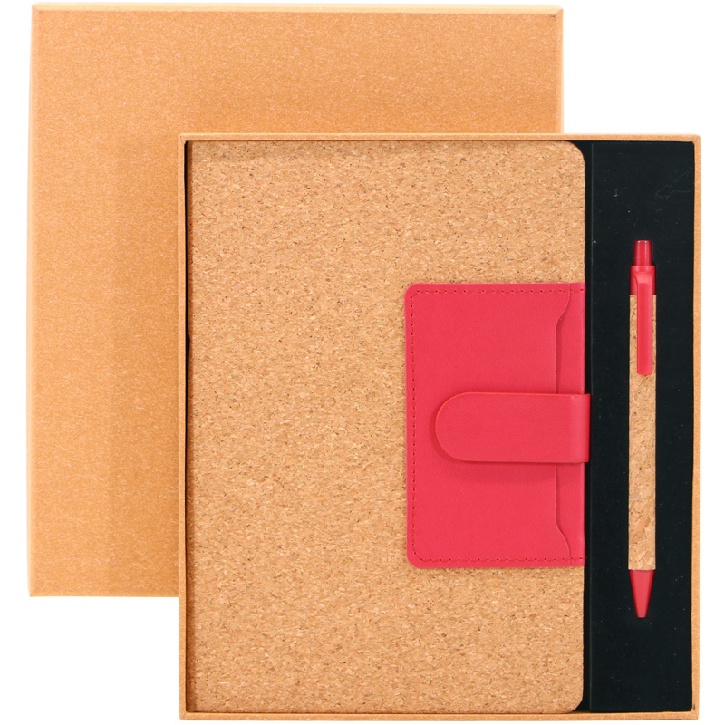 Gift Set,A5 Cork Notebook with PU Card Pocket,Cork Ballpen,96Sheets 70gms Lined Cream Papers