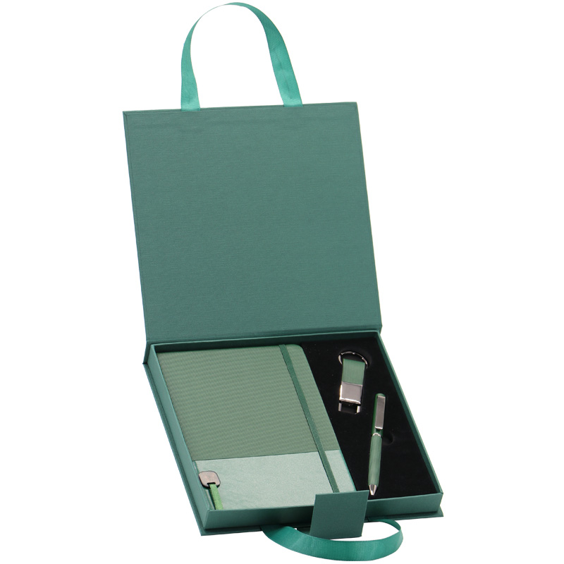 Handle Gift Set,A5 PU Notebook with Ballpen&Keychain,96Sheets 70gms Lined Cream Papers