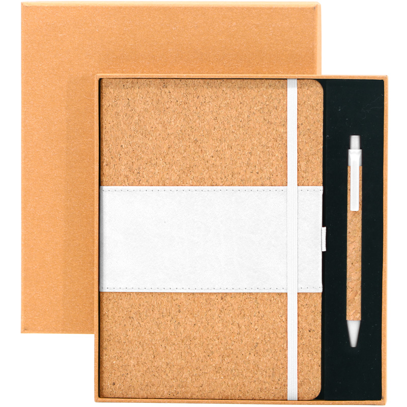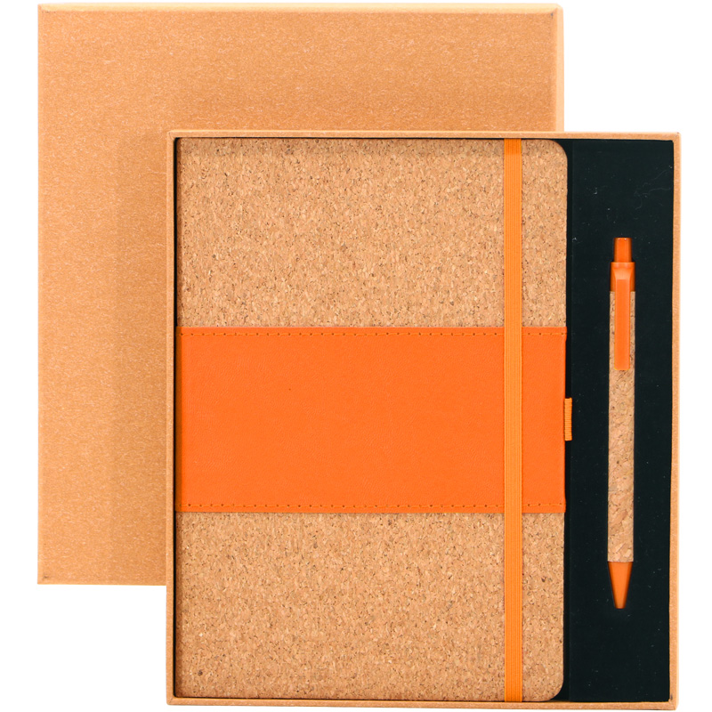 Gift Set,A5 Cork+PU Notebook,Cork Ballpen,96Sheets 70gms Lined Cream Papers